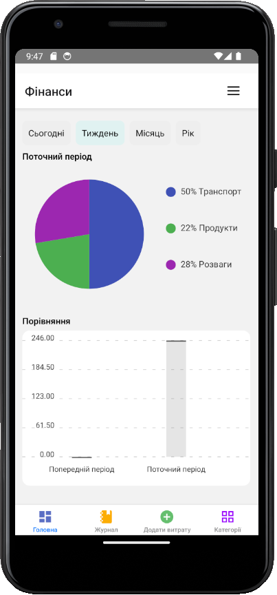 Переглядайте, на що йдуть кошти за тиждень чи місяць.
